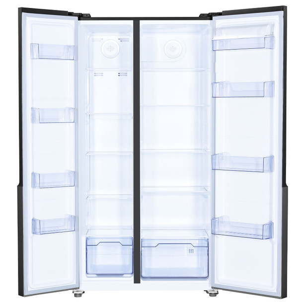 Spacious Tempered Glass Shelves: Strong, durable shelves designed to hold heavy food items while providing a clean, modern look.